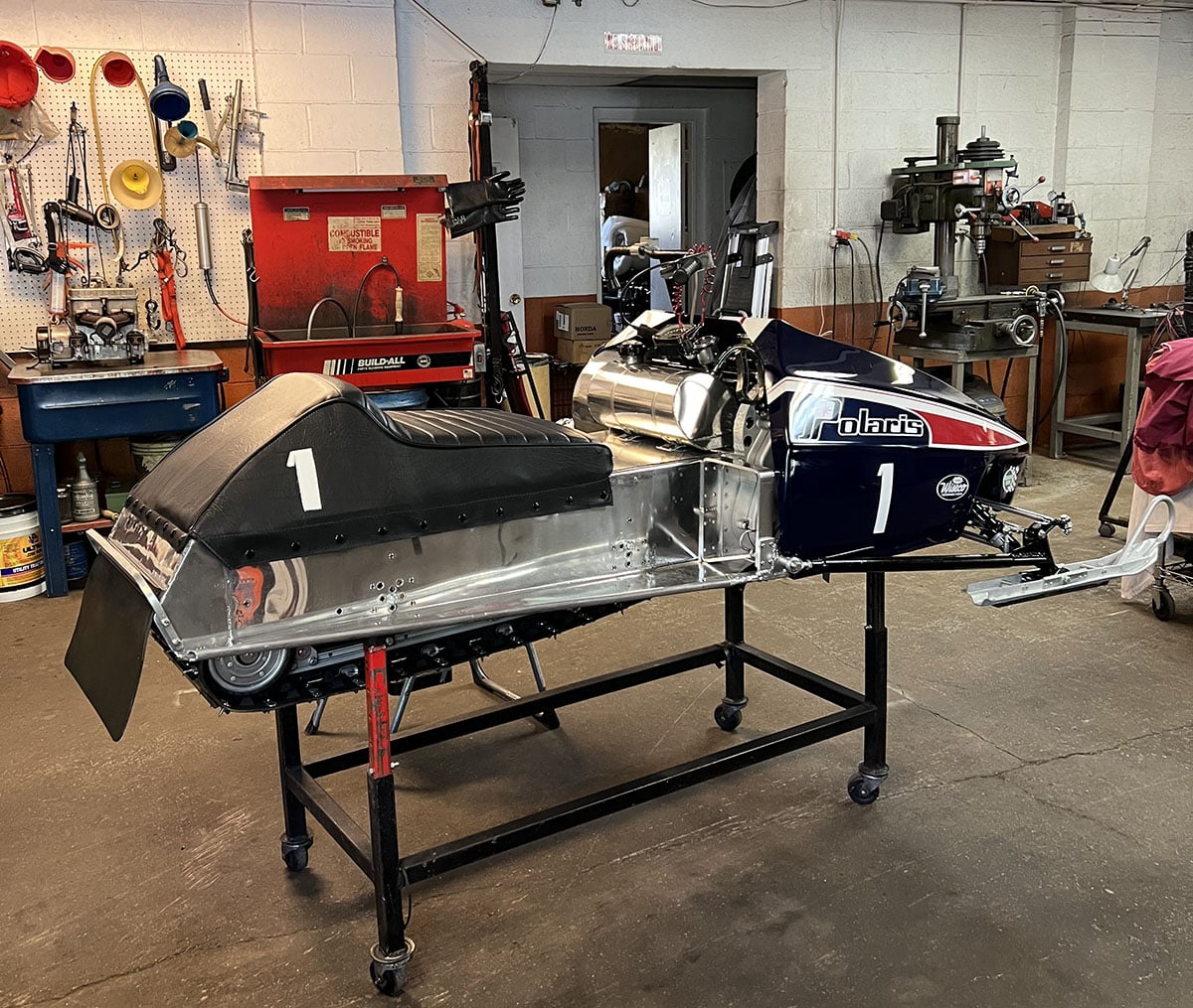 We are not sure where it went after Rudolph had it, but it wound up in Quebec with a gentleman who was still racing it as late as 2002, then he sold it to ‘ol Skiroule Pete, a legend in the vintage snowmobile world. Pete sold it, eventually to Brad Warning, and Brad talked Hulings into the restoration work.