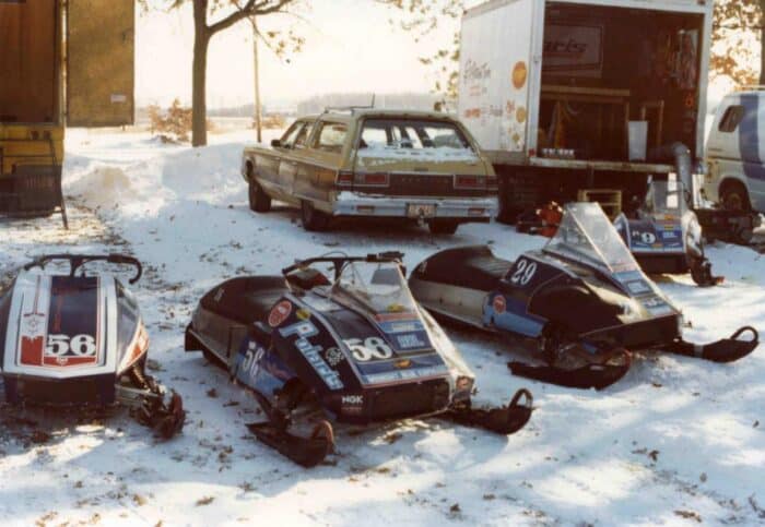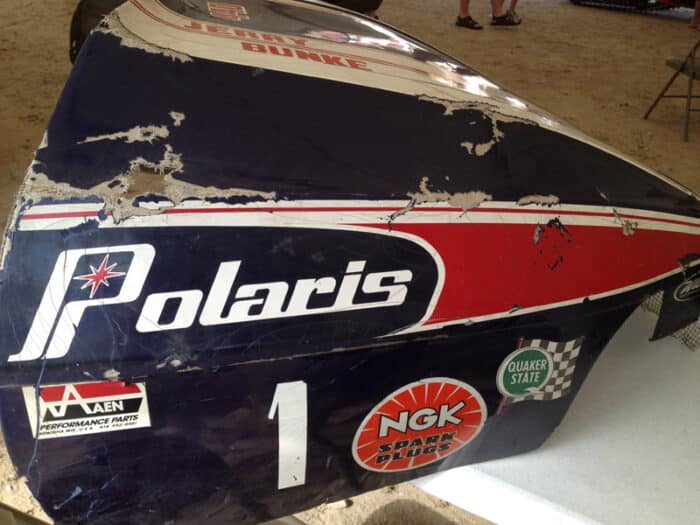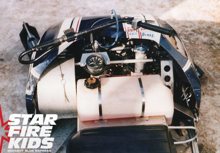 The story is that this tunnel, seat, handbars and skis all started out life as Jerry Bunke’s 2nd 440X machine, completed just in time for Eagle River in 1978. Some years later, Doug Lamb decided he was going to SnoCross race it.